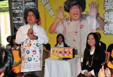 中新網(wǎng)10月29日電 據(jù)臺(tái)灣“今日新聞網(wǎng)”報(bào)道,臺(tái)中市長(zhǎng)胡志強(qiáng)28日頭戴花白假發(fā),變身“胡奶奶”,發(fā)表新書《婆婆媽媽臺(tái)中經(jīng)》。他表示,臺(tái)中市就像個(gè)大家庭,主政9年來,他是以家中婆婆媽媽心情料理市政。想的是如何把市政做好,讓市民感到幸福而常常歡笑。