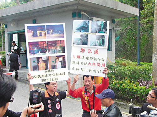 金介壽表示,10月15日接獲民眾檢舉,指鄭弘儀耗資數(shù)新臺幣千萬元買下青山鎮(zhèn)社區(qū)兩層樓別墅,涉嫌加蓋違建,立即向縣府舉報,發(fā)現(xiàn)事隔半個月后,增建的違建竟已完工,2日要求拆除大隊人員前往現(xiàn)場會勘。