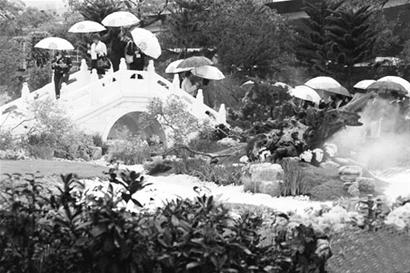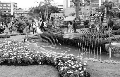 圓山公園展區(qū)戶外的大陸庭園內(nèi),只有緊挨在一起的上海和西安展區(qū)。上海展區(qū)內(nèi)有小橋流水,花草吐香,最為顯眼,且最能引起人們對舊上海歷史與文化回憶的設(shè)計(jì),則是由植栽構(gòu)成的石庫門建筑。