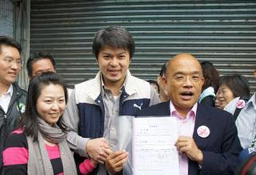 中新網11月18日電 據(jù)臺灣“今日新聞網”報道,民進黨日前才在平面媒體刊登“對不起,我真的不敢結婚”廣告,民進黨臺北市長候選人蘇貞昌18日在公館水源市場附近拜票時,突然出現(xiàn)一對男女把路攔住,希望蘇貞昌當結婚證人,而蘇貞昌也當場為兩人證婚、給予祝福。