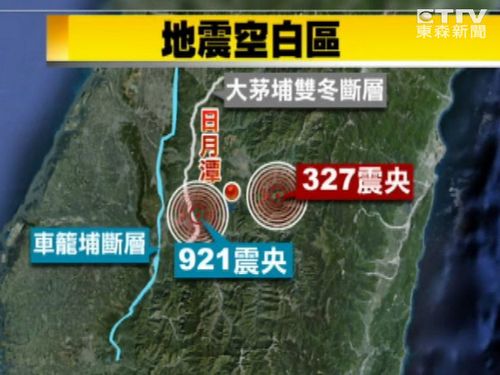327地震、602地震兩次地震震中都位于921地震車籠埔斷層東邊,這塊區(qū)域過去很少有地震紀錄,被稱為“日月潭地震空白區(qū)”,從過去的地震分布圖分析,日月潭東邊這區(qū)塊是幾乎是空白一片。臺灣“中央大學”地球科學院長王干盈在327地震后曾表示,“中央山脈很硬,卡住,所以921地震,你可以看到這個地方卡住,所以它才沖到這邊來!