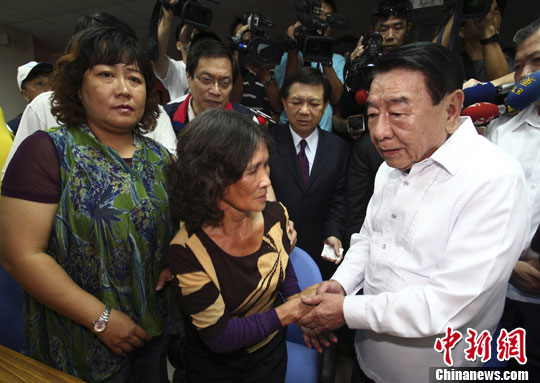 中新網(wǎng)8月8日電 據(jù)臺(tái)灣TVBS報(bào)道,臺(tái)灣“廣大興28號(hào)”漁船案事發(fā)至今近3個(gè)月,菲律賓總統(tǒng)阿基諾三世授權(quán)特使佩雷斯,代表菲總統(tǒng)到臺(tái)灣向受害人家屬致歉。佩雷斯8日抵臺(tái),在記者會(huì)中使用了“Apology”的道歉字眼。對(duì)此,死亡漁民洪家家屬表示接受。