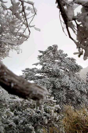 寒流籠罩臺(tái)島:合歡山出現(xiàn)霧淞 猩猩取暖(組圖)