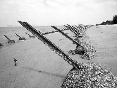 小金門海灘的反登陸樁