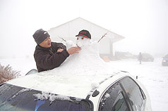合歡山昨日傍晚6時許開始飄雪花,雖然雪勢不大,但整晚陸陸續(xù)續(xù)的飄,再度讓合歡山公路自昆陽以上至松雪樓沿線出現(xiàn)積雪。