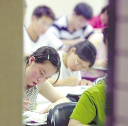 圖為臺(tái)灣公務(wù)員考生專心作答的場(chǎng)景。