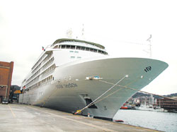 據(jù)臺(tái)灣《中國(guó)時(shí)報(bào)》報(bào)道,屬于歐洲摩納哥船東的“銀影號(hào)”以往多經(jīng)營(yíng)美國(guó)、加拿大、阿拉斯加等航線,今年臺(tái)灣旅行社第一次引進(jìn),從上海出發(fā),昨日上午六時(shí)從日本那霸載來(lái)三百多位歐美有錢有閑的銀發(fā)族旅客,晚間十一時(shí)離基隆港航向下一站香港旅游。銀影號(hào)同款型的姐妹船“銀葉號(hào)”在下月十八日也將首航基隆港。
