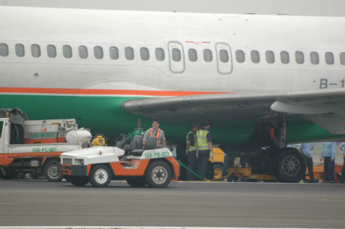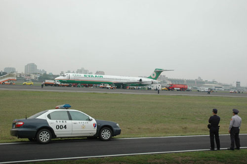 據(jù)“中央社”報(bào)道,這架BR-17913班次MD-90型接駁機(jī)上午八時(shí)四十五分,搭載三十六名乘客從桃園飛往高雄,原定上午九時(shí)二十分抵達(dá)高雄,機(jī)長(zhǎng)起飛后發(fā)現(xiàn)右翼輪胎有響聲,懷疑破胎,于是緊急通知高雄機(jī)場(chǎng)塔臺(tái),展開(kāi)迫降前置作業(yè)。