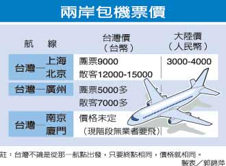 東南旅行社經(jīng)理黃國軒表示,由于各家航空公司直航包機(jī)的起降時間還未最后敲定,若排在好時段,也會比一般時段票價高出五百至八百元。