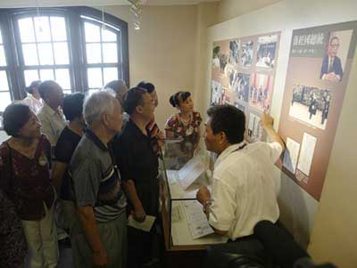 大陸游客參觀一樓回廊、臺灣建筑之美展覽、歷任臺灣地區(qū)領(lǐng)導(dǎo)人文獻(xiàn)檔案,參觀時間約50分鐘。大陸游客也蓋下紀(jì)念章,并在大樓前拍照留念。