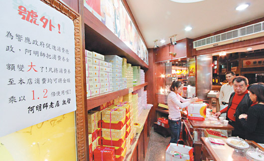 中新網(wǎng)11月19日電 據(jù)臺灣《聯(lián)合報》報道,為刺激消費,臺當局將發(fā)放每人三千六百元(新臺幣,下同)的消費券,迎接高達八百五十億元的消費券商機,包括零售、超商、量販、餐飲等業(yè)者樂翻了,都把消費券視為今年和明年的營銷重點,紛紛摩拳擦掌規(guī)劃各種促銷方案。