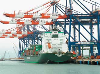 中新網(wǎng)2月18日電 據(jù)臺灣《聯(lián)合晚報》報道,耗資新臺幣203億興建的臺北港貨柜儲運中心今天開始營運,首艘靠港船舶是長榮海運的長能輪,今天上午進港,下午將轉(zhuǎn)往臺中、高雄,再到香港、泰國。