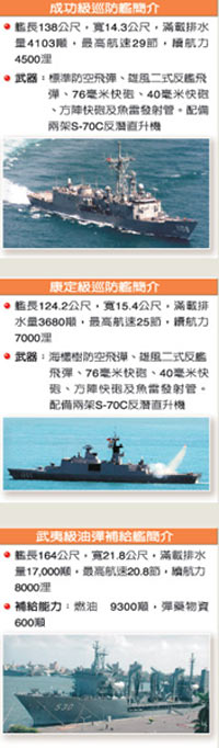 該軍官表示,以臺(tái)灣現(xiàn)有軍艦,最可能是由一艘成功級艦、一艘拉法葉(康定)艦搭配一艘武夷級油彈補(bǔ)給艦,及至少兩架直升機(jī),組成護(hù)航支隊(duì)。據(jù)介紹,武夷號滿載情況下,艦隊(duì)可以獨(dú)立執(zhí)行任務(wù)一百二十天左右。