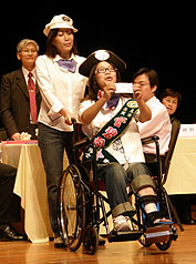 中新網(wǎng)12月19日電 高雄市第七屆“立委”參選人今天(19日)進行號次抽簽,參選人莫不花招百出,其中民進黨“立委”管碧玲坐著輪椅負傷前往抽簽且一身海洋船長裝扮。她并自我解嘲說“獨一無二、無以輪比”,頗有創(chuàng)意。