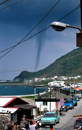 臺(tái)東蘭嶼附近海域,7月底出現(xiàn)水龍卷,如圖一條巨大水柱直沖天際景象壯觀,水龍卷從蘭嶼機(jī)場往漁人部落移動(dòng),八分鐘后消失。記者陳明成/攝影