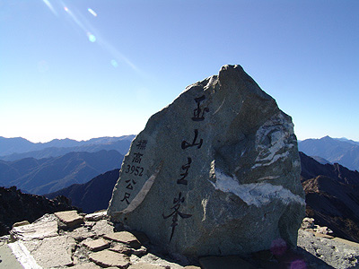 手腳并用的爬上巍巍破碎裸露的垂直角度之后,九點(diǎn)十分,第一次登上玉山。