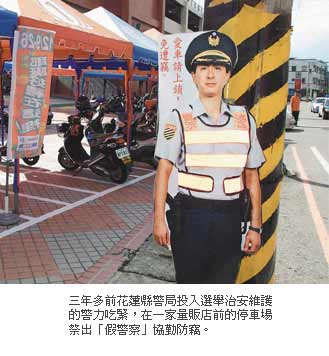警察立牌,是出自新竹縣警局督察長趙成之的點(diǎn)子,四年前他擔(dān)任桃園縣警局大溪警分局分局長時(shí),自己上陣當(dāng)模特兒,制作手握霰彈槍的立像,擺在轄區(qū)銀行門口,讓民眾印象深刻。