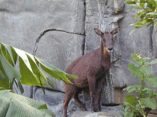 臺(tái)灣長(zhǎng)鬃山羊?yàn)槿A盛頓公約二級(jí)保育動(dòng)物,為臺(tái)灣特有種。它們主要分布在臺(tái)灣山區(qū),烏來(lái)延伸至中央山脈仍可看到它們的蹤影。其外形為深褐色,喉部為黃色,硬蹄分泌蹄脂腺,有助于攀爬山巖,并牢牢地踩在石縫之間,因此喜在懸崖附近活動(dòng),奔跑速度快,若受外力入侵,它們還會(huì)以頭上一對(duì)向后彎曲的洞角頂人自衛(wèi);平時(shí)吃桑葉、鹿構(gòu)樹(shù)葉、三黃麻等枝葉、胡蘿卜等。