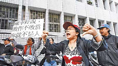 中新網(wǎng)2月11日電 據(jù)臺(tái)灣《蘋果日?qǐng)?bào)》報(bào)道,涉及機(jī)要費(fèi)弊案、洗錢案、南港展覽館弊案、龍?zhí)顿彽乇装杆拇蠊偎镜膮鞘缯涓袅?87天后再度上法庭應(yīng)訊。開庭半個(gè)小時(shí)后,她就直接或間接承認(rèn)七條起訴罪狀中的偽造文書、泄密、收賄、洗錢四罪,坦承“一切都是我做的”、“我怕‘總統(tǒng)’知道(我收錢)”,庭訊后并首次就丑聞弊案向社會(huì)道歉。吳淑珍10日所承認(rèn)的四罪,最重可被判無期徒刑。