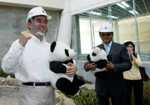 另據(jù)報(bào)道,臺(tái)北市動(dòng)物園27日以公開4月即將完工的熊貓館,展現(xiàn)爭取熊貓展出企圖心,市長郝龍斌站在熊貓館前宣示:“熊貓預(yù)計(jì)10月抵臺(tái),檢疫后11月開放展示!
