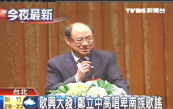 中新網(wǎng)4月19日電 據(jù)臺灣“中央社”報道,海峽兩岸關系協(xié)會常務副會長鄭立中18日歌興大發(fā),在海峽交流基金會的晚宴上高唱卑南族(臺灣少數(shù)民族族群之一)歌謠“我們都是一家人”,還用閩南語祝愿“健康、平安、順利”,舉杯“乎干啦”。