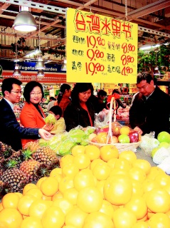 該公司表示,百聯(lián)集團(tuán)旗下超市系統(tǒng)與臺(tái)灣利統(tǒng)有限公司合作,未來(lái)幾個(gè)月每周將進(jìn)口100噸臺(tái)灣水果供應(yīng)上海市場(chǎng)。