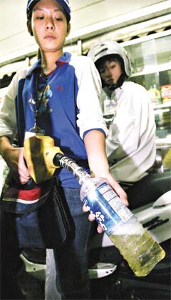 “中油”主管表示,消費(fèi)者若要求把油裝在寶特瓶帶走,加油站通常不能拒絕,頂多只能柔性勸導(dǎo)。事實(shí)上,因?yàn)槊垦b一公升寶特瓶的汽油,最多只能省八角,省的錢不多,但風(fēng)險(xiǎn)極高,因?qū)毺仄垦b汽油易溶化,只要漏一點(diǎn)油出來,遇到高溫就會(huì)引爆,寶特瓶囤油罐很容易變成汽油炸彈。