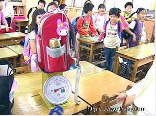 小女生提起書包好沉重,里頭到底裝了些什么呀?學(xué)校課本7、8本加上安親班作業(yè),教室里每個(gè)小朋友的書包平均都超過5公斤,放不下才藝班課本,只還裝在另一個(gè)手提袋里,三十多公斤的孩子,等于每天背著六分之一重的自己上學(xué)去。