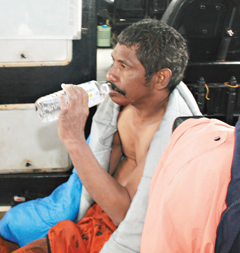 “我是船上的干練水手,我們二十四日從印度尼西亞新高打港出發(fā),一直往北航行,躲過(guò)了臺(tái)風(fēng)。二十七日下午兩點(diǎn)多在鼻頭角外海時(shí),風(fēng)浪越來(lái)越大,而且從右舷打來(lái),突然一個(gè)大浪打上船,把甲板上的船艙蓋打掉了;再來(lái)的大浪把海水灌進(jìn)裝載鐵砂的船艙,造成船舶不斷傾斜,船長(zhǎng)看到船舶傾斜角度超過(guò)安全標(biāo)準(zhǔn)就廣播棄船。”哈利心有余悸地說(shuō)。