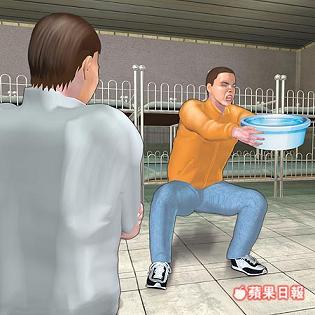 2、恐怖鐵板橋:兩手撐地,翹起臀部,在臀部放上臉盆及其它任何物品,只要東西掉下來即遭毆打。
