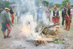 中新網(wǎng)2月29日電 臺灣臺東縣卑南族知本卡地布部落發(fā)起“烽火狼煙串聯(lián)行動”,28日在卡地布部落祭司長向祖靈完成祈祝儀式后,即在部落集會所的廣場燃起烽火。據(jù)悉,3月8日還將北上向陳水扁提出訴求。