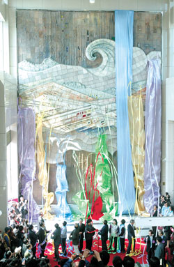 捷運紅線唯一的景點橋頭糖廠,最出名的“枝仔冰”被搶購一空。民眾手拿“枝仔冰”,望著高十二米、寬九米的“天工開物”大型陶壁公共藝術(shù)品,讓維護清潔的高雄捷運員工焦急不已,擔心將藝術(shù)品弄臟,想勸阻又怕掃了大家的興致,只好忍下,期待捷運禮節(jié)能慢慢融入民眾心中。
