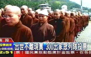 據(jù)臺灣媒體報道,10多輛大型游覽車,載著中臺禪寺的300多名和尚、尼姑,一同抵達投票所。300多人列隊整齊排在投票所外等候。