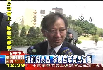 選前曾挺謝長(zhǎng)廷 李遠(yuǎn)哲選后恭賀馬英九當(dāng)選