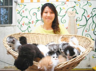 中新網(wǎng)5月21日電 臺(tái)灣一位29歲的女研究生徐慈馡念大一時(shí)養(yǎng)第一只貓,從此愛(ài)貓成癡,如今養(yǎng)了三十只,為照顧“貓咪軍團(tuán)”,她省吃?xún)用,貓住套房、吃高級(jí)餐,她穿百元平價(jià)衣、吃路邊攤,卻無(wú)限滿(mǎn)足。