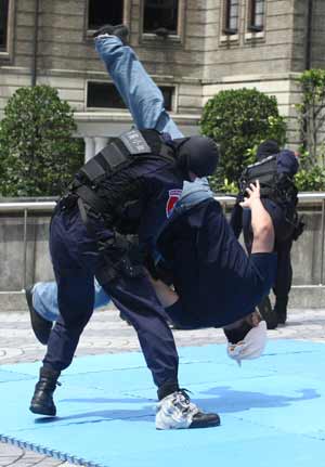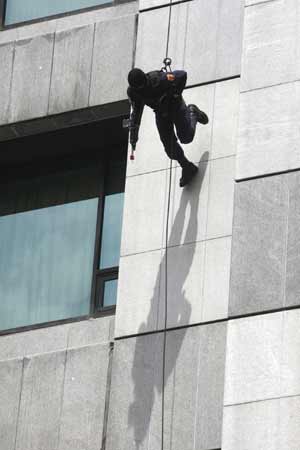 中新網(wǎng)6月13日電 據(jù)“中央社”報道,臺北市政府警察局13日慶祝警察節(jié)活動,安排特勤中隊表演戰(zhàn)技操演,隊員們演練如何制服歹徒以及從高樓垂降進行攻堅。