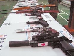 臺警方查獲透過網(wǎng)絡營銷具殺傷力的改造手槍,是目前黑幫分子的最愛。(圖:臺灣《中國時報》)