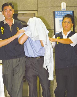 寄子彈恐嚇陳水扁一案,臺(tái)北市警察局中正一分局24日循線在北縣中和逮捕46歲的康姓男子(中)。(陳志源攝)