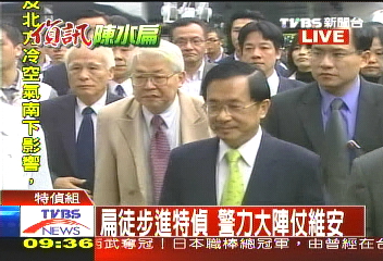 陳水扁抵達臺檢方特偵組應訊。圖片來源:臺灣TVBS