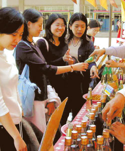 有男同學便起哄要跟賴某打賭,假如她有辦法一口氣喝光一整瓶高粱酒,就贏六百元新臺幣的獎金;極有酒膽的賴某也不遲疑,直接仰頭喝酒,男同學鼓掌叫好。
