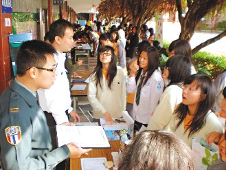 現(xiàn)場(chǎng)以臺(tái)軍北區(qū)人才招募中心的攤位人氣最旺,被許多學(xué)生包圍詢問(wèn)待遇和發(fā)展,并留下個(gè)人資料;一名軍官表示,高職畢業(yè)生報(bào)考志愿役士兵及儲(chǔ)備士官,畢業(yè)起薪新臺(tái)幣2萬(wàn)7000元,報(bào)考士官二專班以3萬(wàn)4000元起薪。