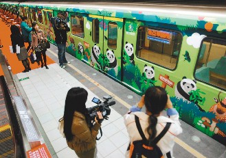 趁著熊貓熱,臺(tái)北市觀光傳播局也特別打造“捷運(yùn)熊貓列車”,每節(jié)車廂外有臺(tái)灣黑熊、長(zhǎng)鬃山羊、梅花鹿等十二種保育類動(dòng)物,以及六只可愛熊貓圖案,預(yù)計(jì)將行駛至明年三月二十五日。