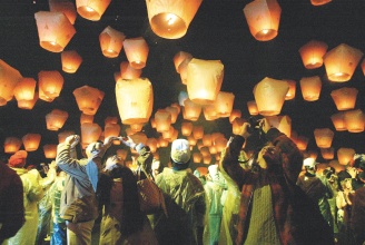 平溪國際天燈節(jié)今年除施放臺灣主燈,另有日本紙風船天燈、墨西哥造型天燈,增添異國風情。