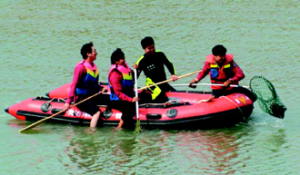 中新網3月12日電 “第一次看到‘抓猴’不在旅館”,有只臺灣小獼猴11日受困高雄縣旗尾溪。有關人員出動橡皮艇救援,讓它嚇得跳入水中逃竄,橡皮艇只好追著小獼猴追捕,現(xiàn)場圍觀民眾目睹不一樣的“抓猴”劇,也為獼猴安危捏把冷汗。