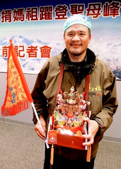 馬祖天后宮為了這次攀登世界最高峰,擲筊后制作一尊六點(diǎn)六吋媽祖金身,讓李小石背負(fù)登山,李小石也修改登山背包,準(zhǔn)備在通過(guò)峭壁等危險(xiǎn)地形時(shí),把媽祖金身裝在背包里,確保安全。