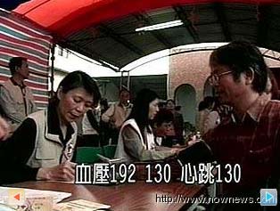 中新網(wǎng)3月26日電 據(jù)臺灣“今日新聞”報道,馬英九夫人周美青今天出現(xiàn)在云林,她再度以紅十字會志工身分幫民眾量血壓。有了經(jīng)驗的她這次駕輕就熟。不過,有一位民眾第一次看到她,緊張地血壓飆到192,讓周美青當場嚇到。