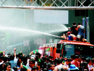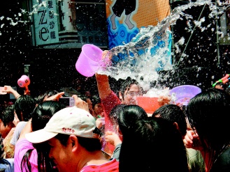 中新網(wǎng)4月13日電 臺灣臺北縣“中和市2009潑水節(jié)”昨天上午在南勢角捷運站盛大登場,民眾拿著水槍、水瓢、水桶到處噴灑開戰(zhàn),臺北縣消防局也調(diào)派兩輛消防水車加入戰(zhàn)局,超強水柱掃射現(xiàn)場民眾,讓民眾遇水則發(fā),氣氛夯到最高點,樂到不行。