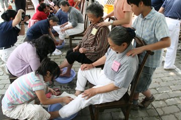 “看到媽媽的腳歷盡風(fēng)霜長了繭,因日曬留下雙色的印記,內(nèi)心真是百感交集,頓時(shí)體悟到必須更貼心、用心地孝敬媽媽。”一名江姓小姐在為媽媽浴足后道出心中的感動(dòng),F(xiàn)場不少媽媽及子女在浴足的過程都滿懷感動(dòng),有人眼眶泛紅遲遲難以言語,有人不禁流下激動(dòng)的淚水,讓旁人也強(qiáng)烈感受濃濃的孝親之情。