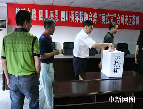 中新網(wǎng)成都8月18日電(王萌 陳典路)“去年四川地震后,臺灣同胞紛紛慷慨解囊,幫助我們度過了最艱難的日子;現(xiàn)在,臺灣同胞遭受臺風(fēng)肆虐,華夏兒女同根同源,我們義不容辭獻(xiàn)出愛心,用大愛撐起抗災(zāi)的力量,用信念幫助受災(zāi)的臺灣同胞!彼拇ㄊS辦主任周敏謙率先將捐款放入捐款箱,拉開了四川僑界“情系臺胞、四川感恩、救助臺灣‘莫拉克’臺風(fēng)災(zāi)區(qū)募捐”儀式的序幕。