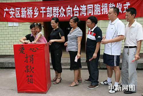獲悉寶島臺(tái)灣遭遇“莫拉克”臺(tái)風(fēng)的強(qiáng)烈襲擊造成重大人員傷亡及財(cái)產(chǎn)損失的消息后,曾遭受“5.12”地震災(zāi)害的廣安區(qū)百萬(wàn)人民感同身受,積極響應(yīng)區(qū)“紅十字會(huì)”的募捐倡議,踴躍捐款,以幫助臺(tái)灣同胞盡快走出困境,重建家園。在新橋鄉(xiāng),干部群眾踴躍捐款,當(dāng)日現(xiàn)場(chǎng)捐款3850元,目前募捐還在繼續(xù)。據(jù)了解,去年該鄉(xiāng)群眾為“5.12”汶川大地震捐款達(dá)7萬(wàn)多元。(完)